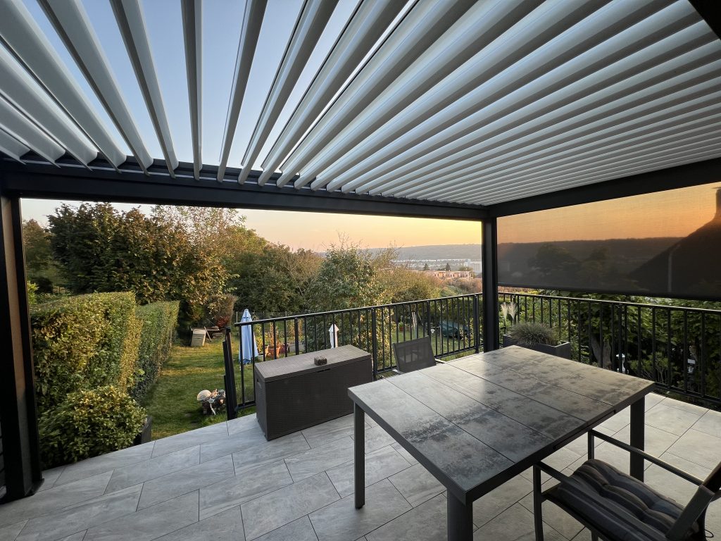 Pergola bioclimatique avec ossature en aluminium laquée gris anthracite + Lames orientables en aluminium laquées blanc Venez rencontrer nos équipes dans l’une de nos agences : […]