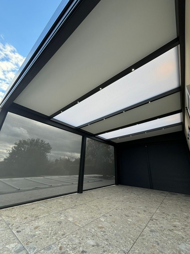 Pergola Fixe avec ossature en aluminium laquée gris anthracite + Chevrons aluminium avec spots LEDS intégrés+ Remplissage panneaux polycarbonates 32mm Venez rencontrer nos équipes dans l’une […]