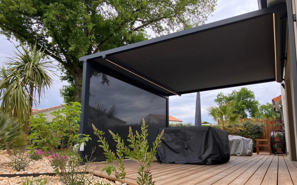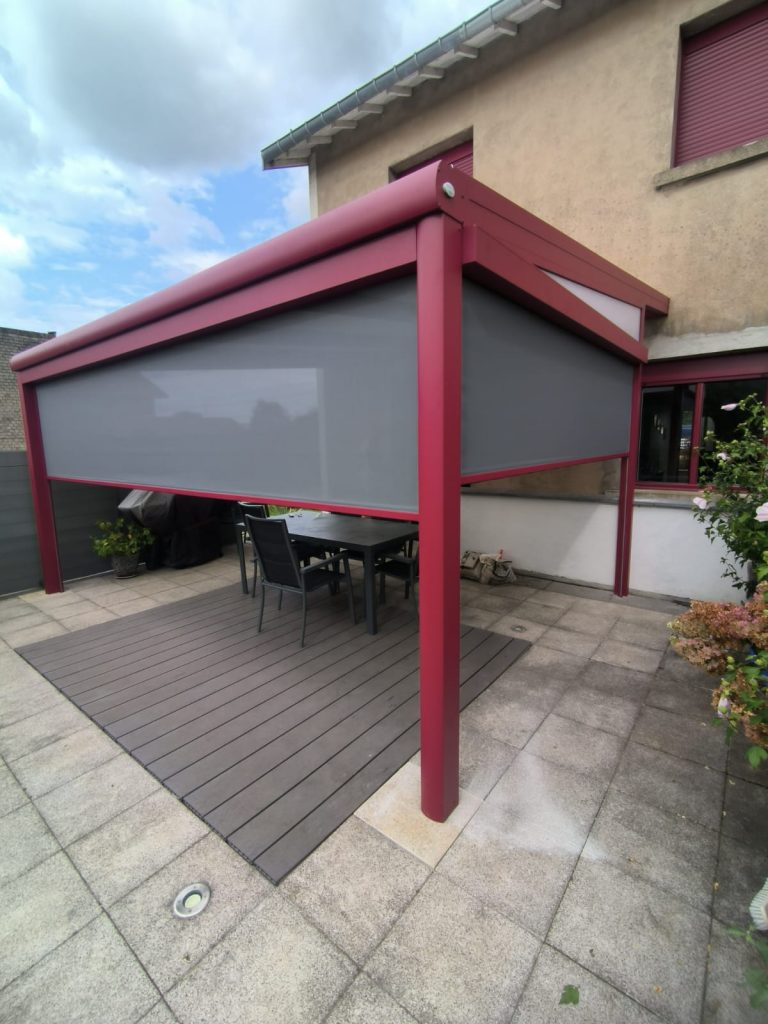 Pergola Fixe avec ossature en aluminium laquée rouge pourpre + Toiture fixe Polycarbonate+ Stores ZIP gris anthracites intégrés sur les côtés Venez rencontrer nos équipes dans […]