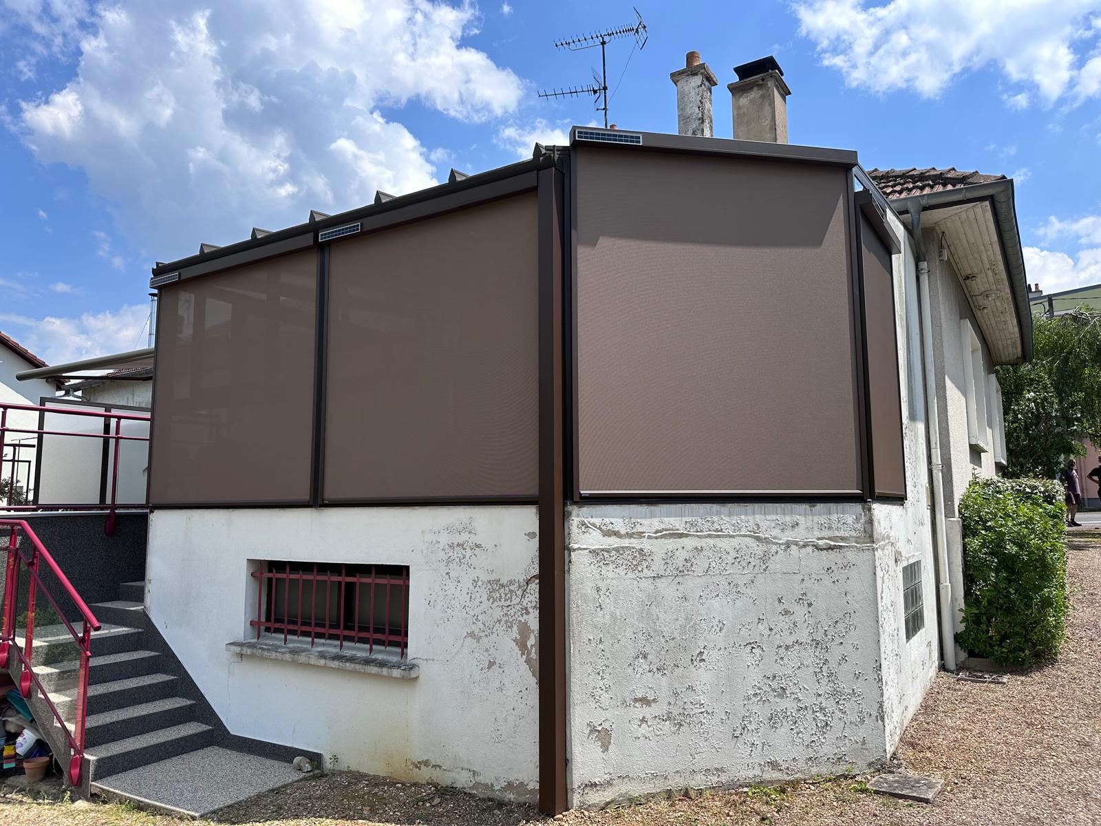 Store screen zip solaire+ Coffre et Toile Brun+ Pose sur Véranda existante