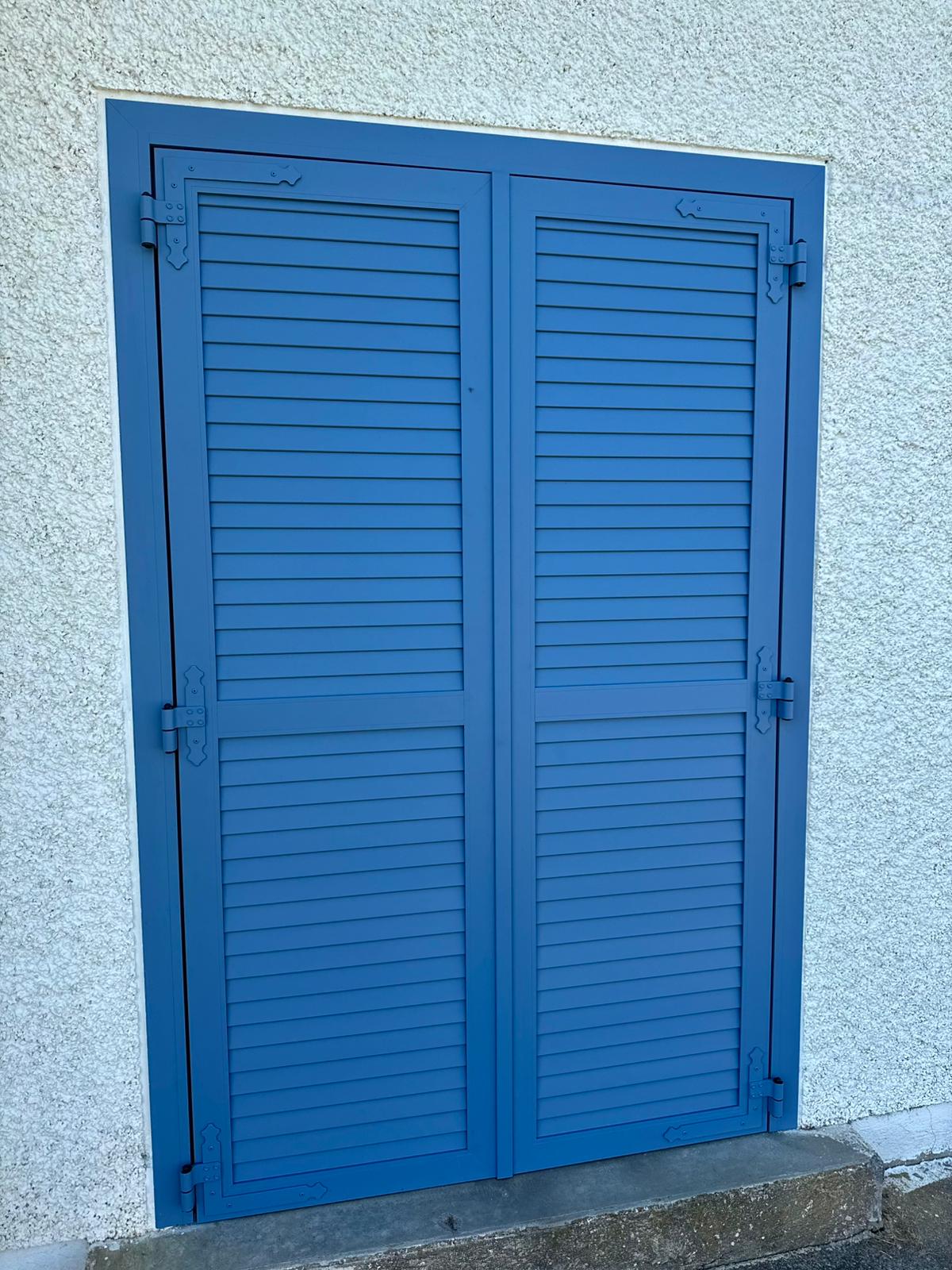 Volets battants en aluminium laqué bleu ciel+ persienne non ajourée
